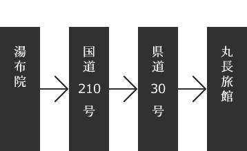湯布院IC国道210号を湯平温泉経由で広域農道を約50分の場所に当館はございます。