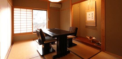 お座敷をご希望のお客様向けには、掘りごたつのお食事処と、椅子・テーブルのお食事処もご用意致しました。