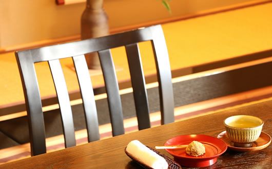 落ち着いた色調で、冬には床暖房も利用できるお食事処です。