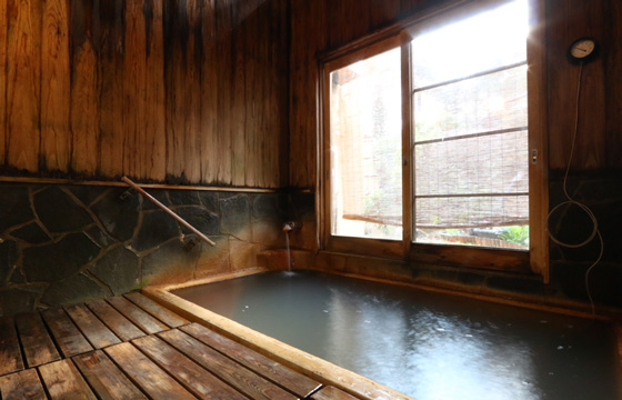 お湯は源泉かけ流し。湧出量、源泉温度、炭酸含有量などから日本一の炭酸泉といわれている長湯温泉。